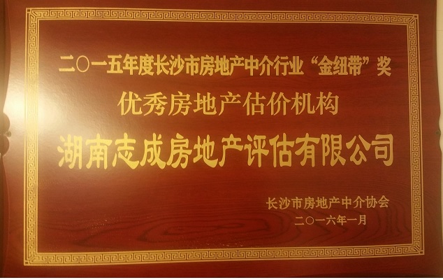 2015年度長沙市房地產(chǎn)中介行業(yè)“金紐帶”獎(jiǎng)和“優(yōu)秀房地產(chǎn)估價(jià)機(jī)構(gòu)”