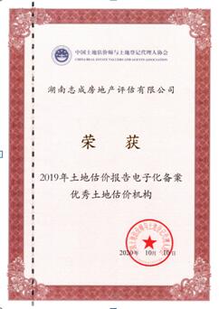 2019年土地評估報告電子化備案優(yōu)秀土地評估中介機構(gòu)
