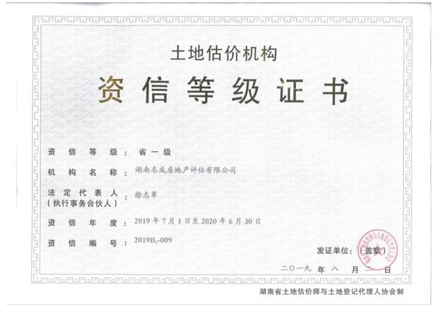 湖南省土地估價師與土地登記代理人協(xié)會2019年度省一級資信機構
